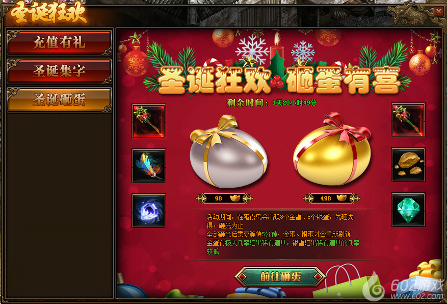 3、金蛋有极大几率砸出稀有道具-圣诞梦幻,银蛋砸出稀有道具的几率较低;