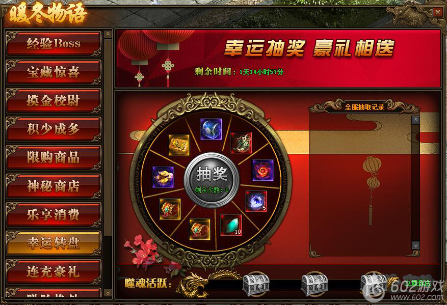 2、活动期间内,根据抽奖次数可用于抽取转盘内奖励道具,奖励道具不会重复获得;