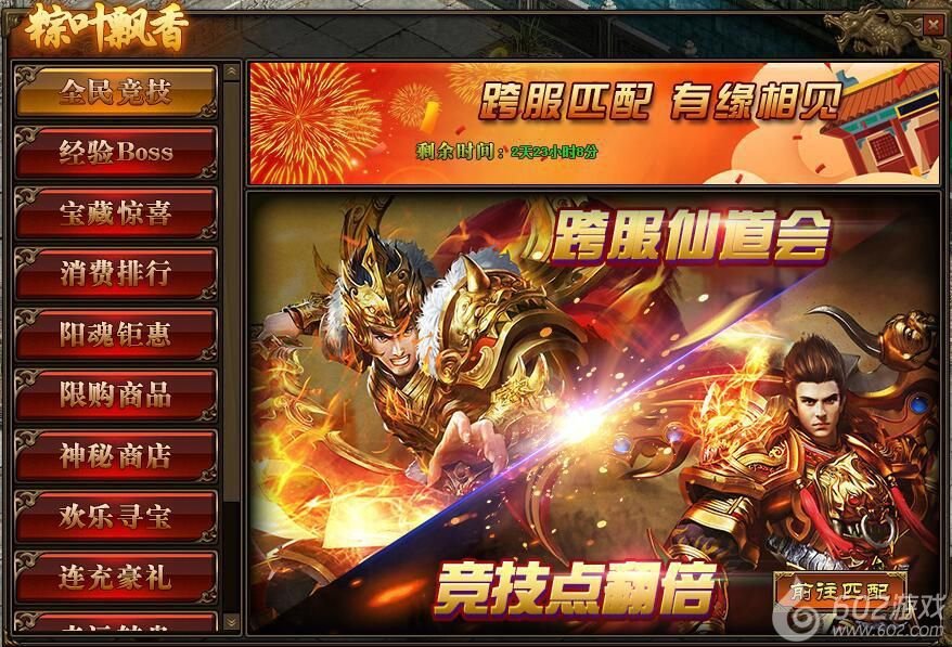 1.活动期间,玩家参与跨服仙道会3V3或5V5匹配,获得“竞技点”翻倍;