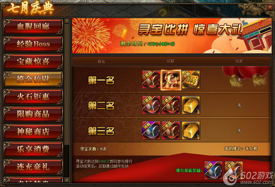 1.活动期间,玩家寻宝次数达到1000次即可参与到摸金校尉排行榜中