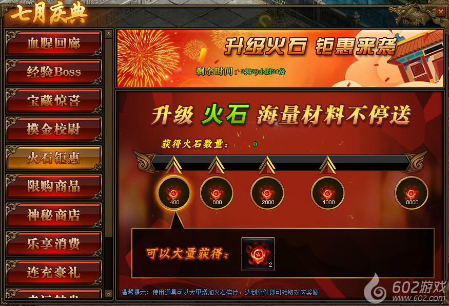1.活动期间,玩家获得火石碎片数量,达到条件可领取对应火石碎片奖励。