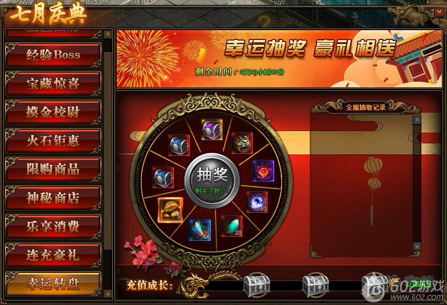 1.活动期间内,每日充值可增加充值成长值,达到一定充值成长值后可领取抽奖次数,每日最多获得3次抽奖机会;
