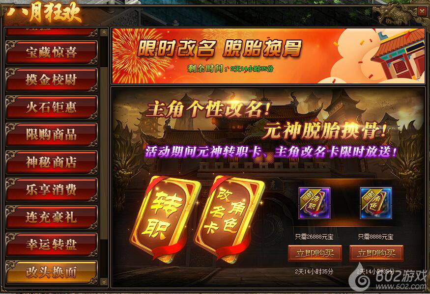 2.活动期间,玩家可在活动面板中购买主角改名卡,让你的名字个性十足;