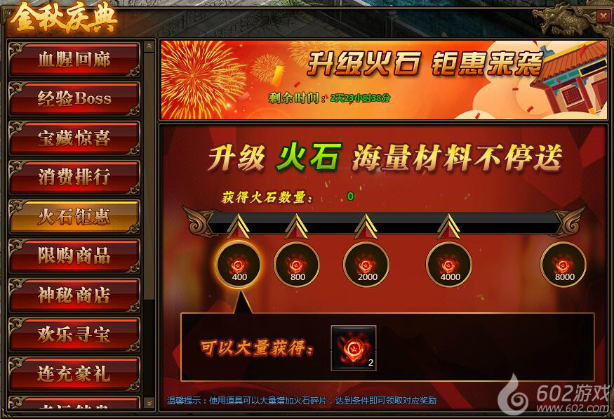 1.活动期间,玩家获得火石碎片数量,达到条件可领取对应火石碎片奖励。