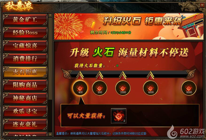 1.活动期间,玩家获得火石碎片数量,达到条件可领取对应火石碎片奖励。