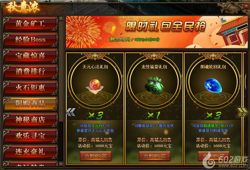 1.活动期间,玩家可在活动面板购买限购商品;(可翻页)