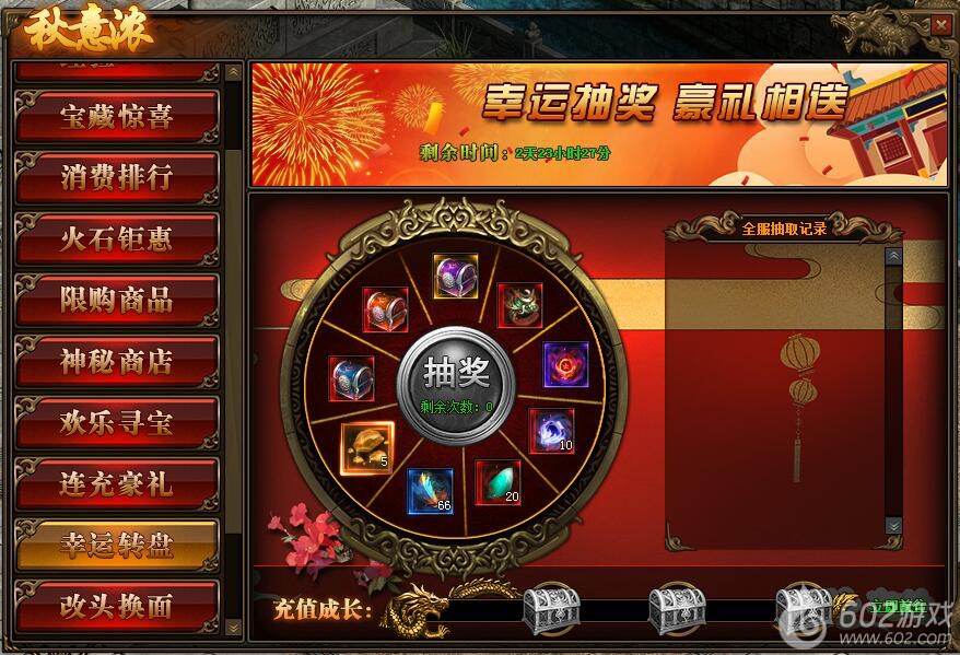 1.活动期间内,每日充值可增加充值成长值,达到一定充值成长值后可领取抽奖次数,每日最多获得3次抽奖机会;