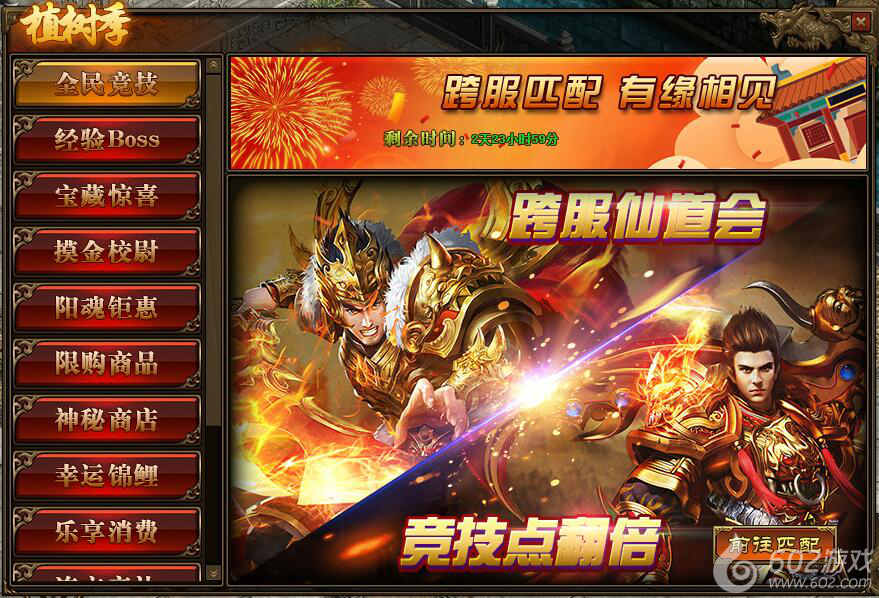1.活动期间,玩家参与跨服仙道会3V3或5V5匹配,获得“竞技点”翻倍;
