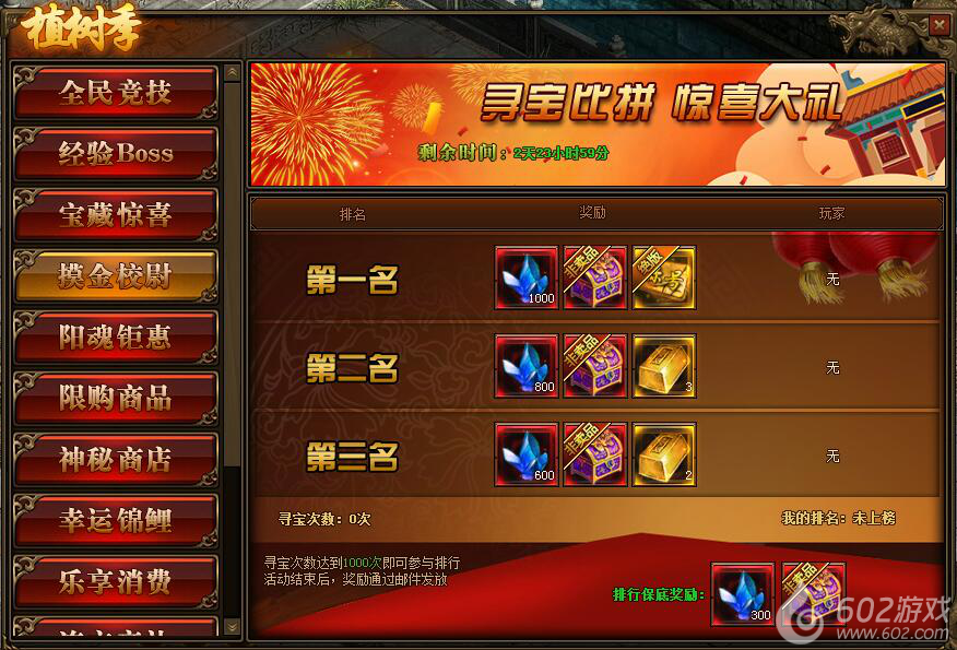 1.活动期间,玩家寻宝次数达到1000次即可参与到摸金校尉排行榜中