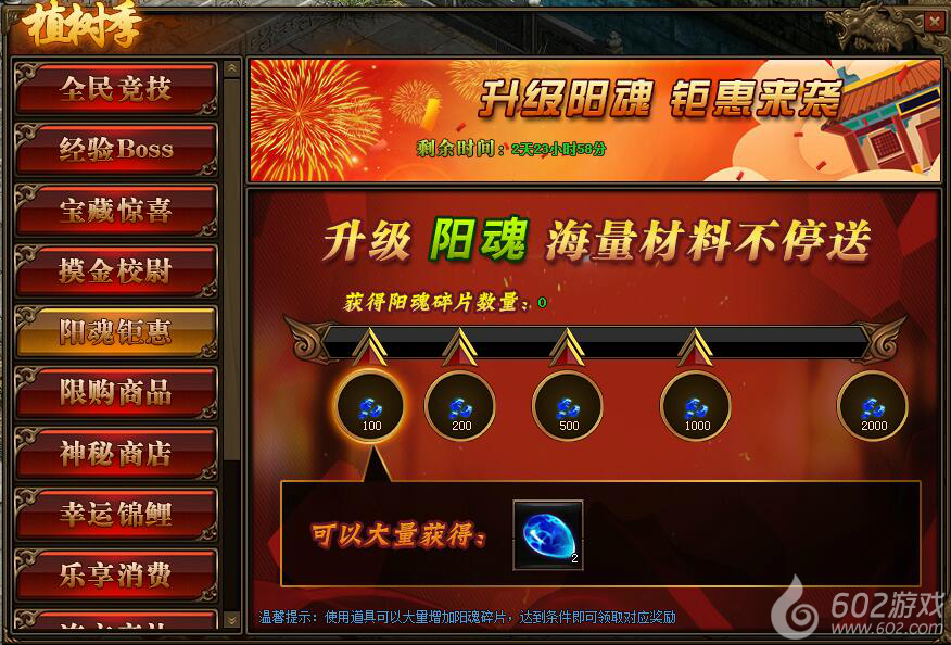 1. 活动期间,玩家获得阳魂碎片数量,达到条件可领取对应阳魂碎片奖励。