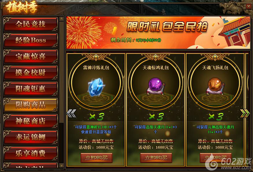 1.活动期间,玩家可在活动面板购买限购商品;(可翻页)