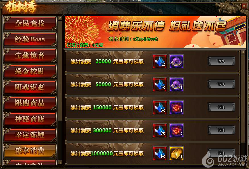 1.活动期间,玩家累计消费满足要求,可以领取境界修为、本职业星石、传世灵戒等相应奖励;