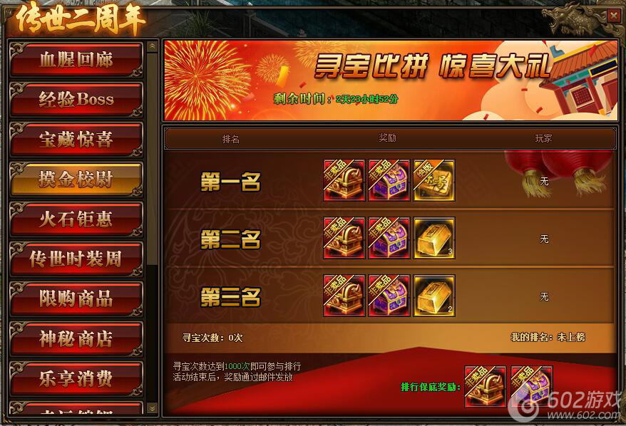 1.活动期间,玩家寻宝次数达到1000次即可参与到摸金校尉排行榜中