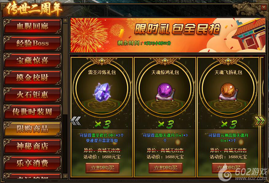 1.活动期间,玩家可在活动面板购买限购商品;(可翻页)