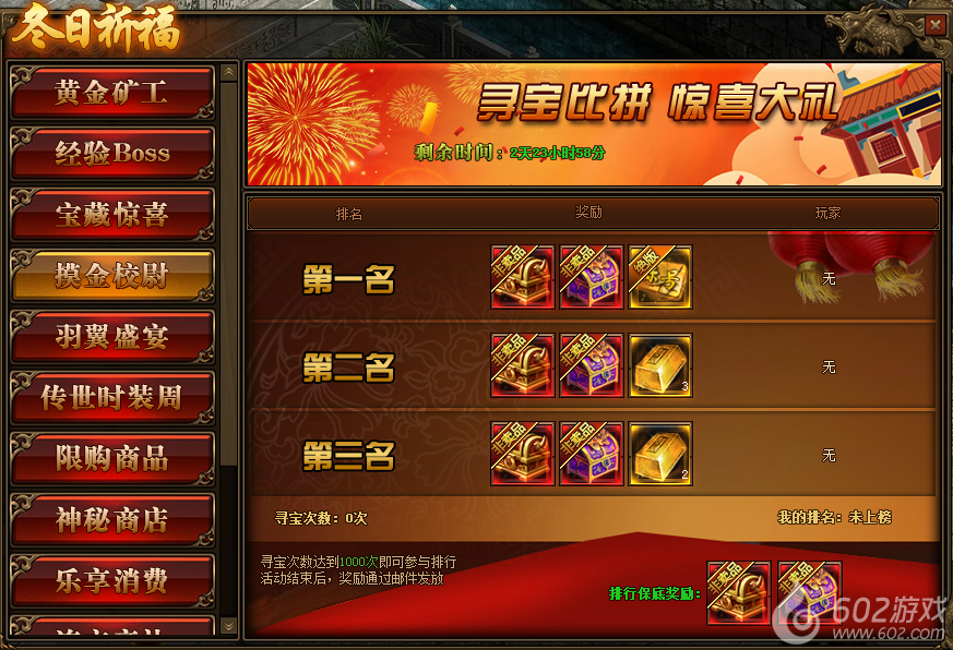 1.活动期间,玩家寻宝次数达到1000次即可参与到摸金校尉排行榜中