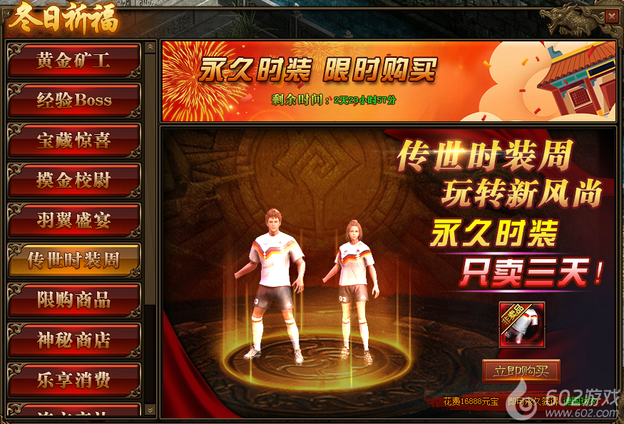 1.活动期间,玩家可购买永久的时装;