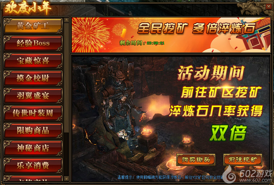 2.注意:必须使用“鹤嘴锄”才可获得“淬炼石”,在VIP矿区可安全挖矿;