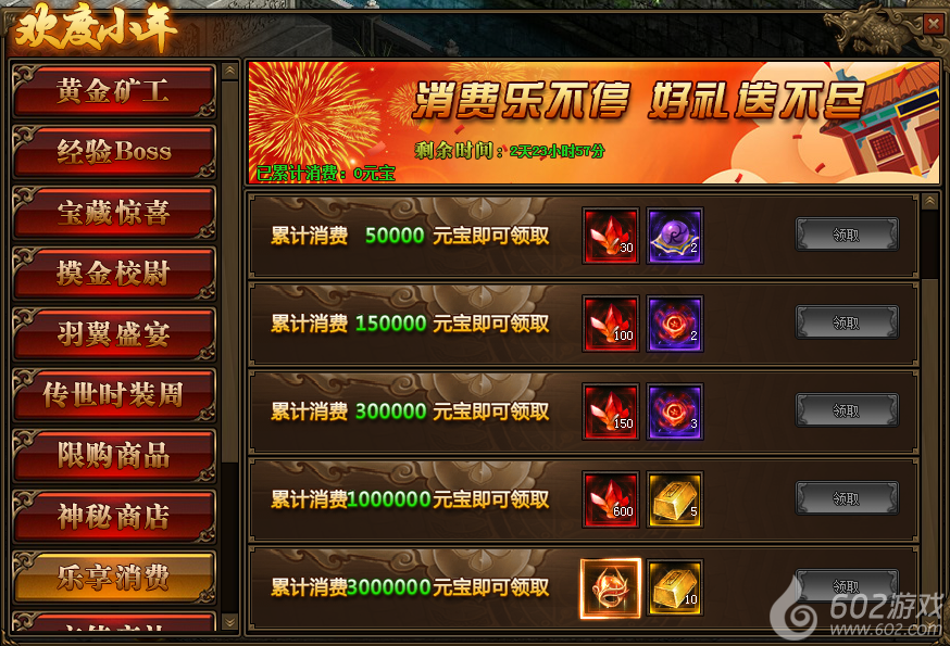 1.活动期间,玩家累计消费满足要求,可以领取境界修为、本职业星石、传世灵戒等相应奖励;