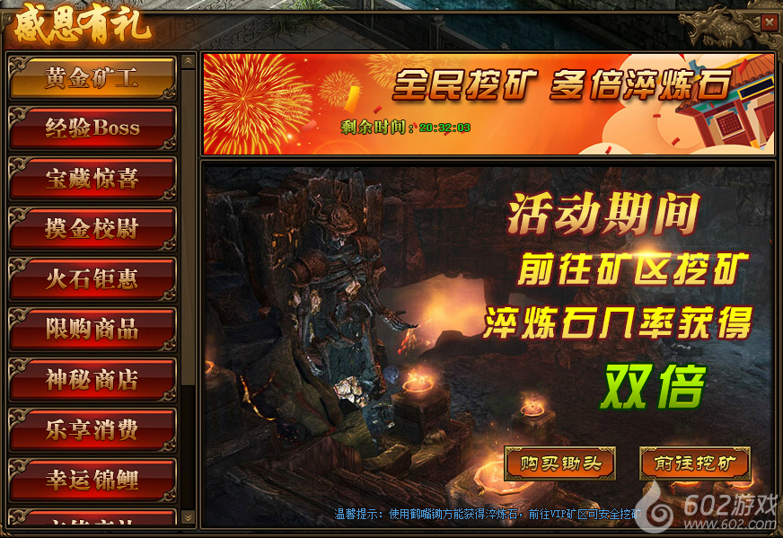 2.注意:必须使用“鹤嘴锄”才可获得“淬炼石”,在VIP矿区可安全挖矿;
