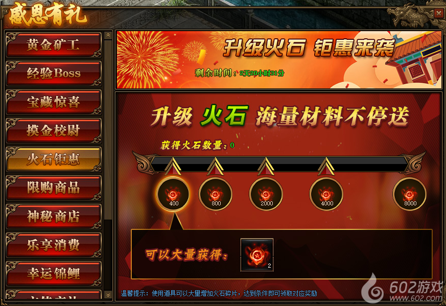 1. 活动期间,玩家获得火石碎片数量,达到条件可领取对应火石碎片奖励。