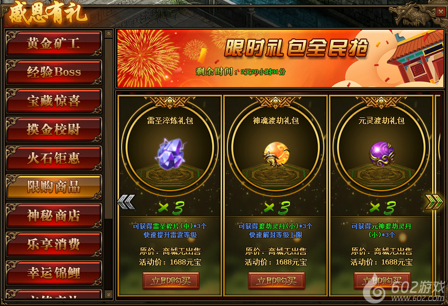 3.不同礼包,买买买,请查看游戏内更多新礼包内容!