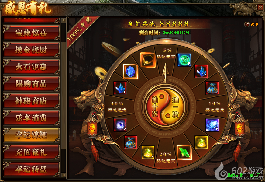 4.豪华奖池,100%中奖,更可称为传世锦鲤,领走奖池元宝!