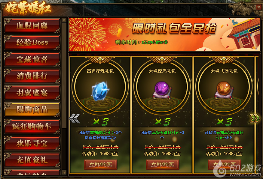 1.活动期间,玩家可在活动面板购买限购商品;(可翻页)