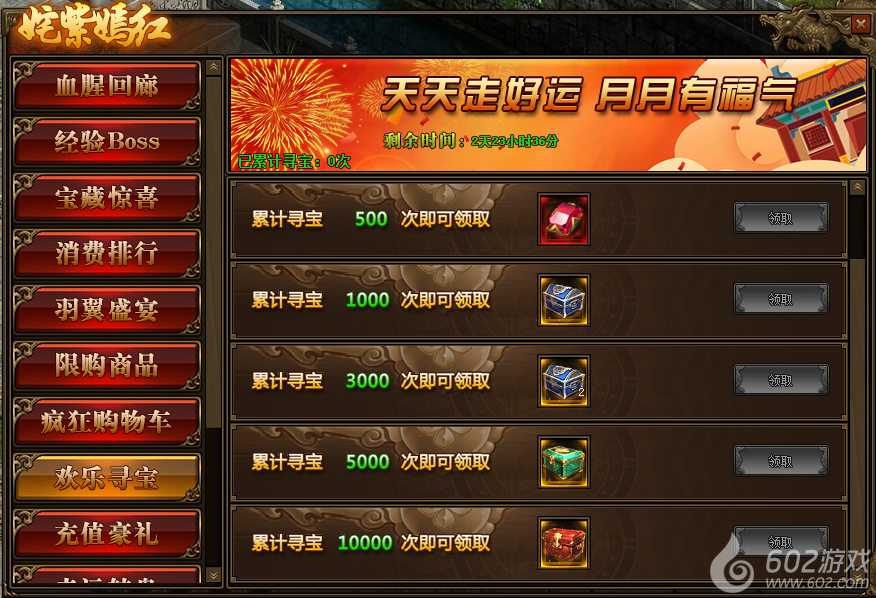 1.活动期间,玩家累计寻宝次数满足要求,可以领取高级天魂石宝箱等相应奖励;