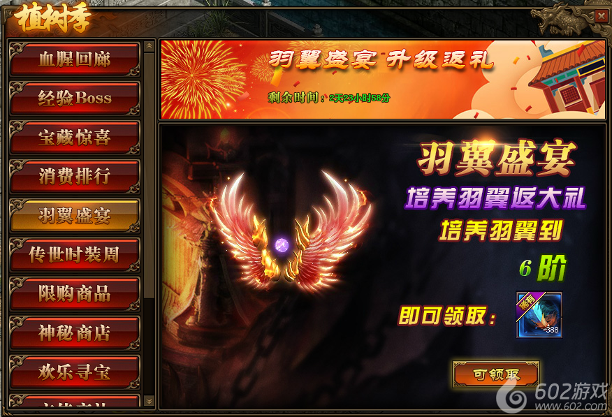 2.玩家每再提升一级的羽翼,将可再次免费领取羽毛;