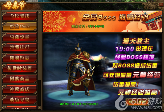 2.活动中,玩家对BOSS造成的伤害,将在活动结束后转换成元神经验并发放;