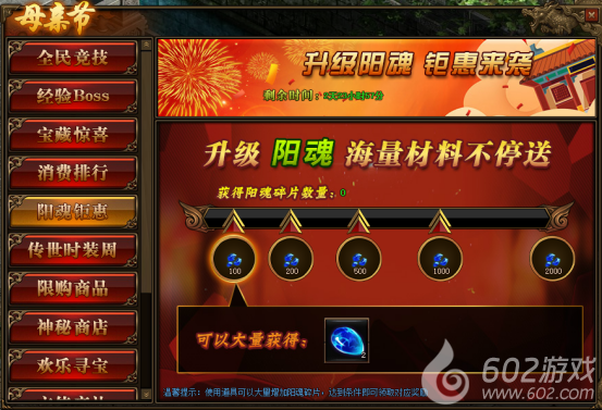 1. 活动期间,玩家获得阳魂碎片数量,达到条件可领取对应阳魂碎片奖励。