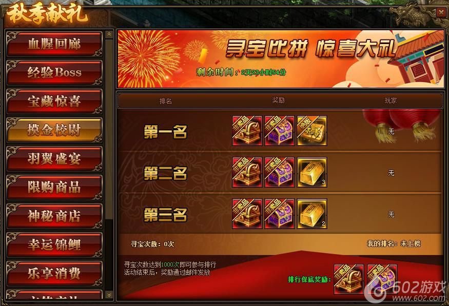 1.活动期间,玩家寻宝次数达到1000次即可参与到摸金校尉排行榜中