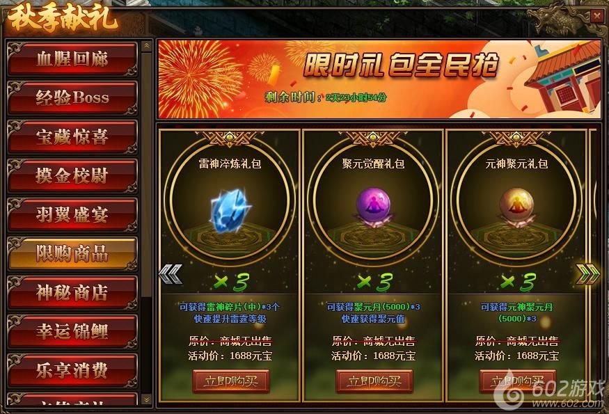 1.活动期间,玩家可在活动面板购买限购商品;(可翻页)