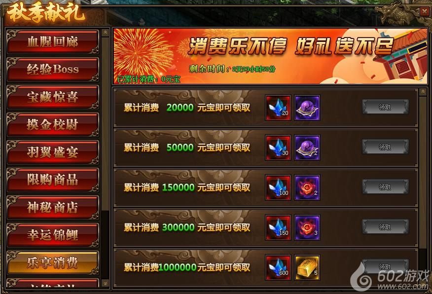 1.活动期间,玩家累计消费满足要求,可以领取境界修为、本职业星石、传世灵戒等相应奖励;
