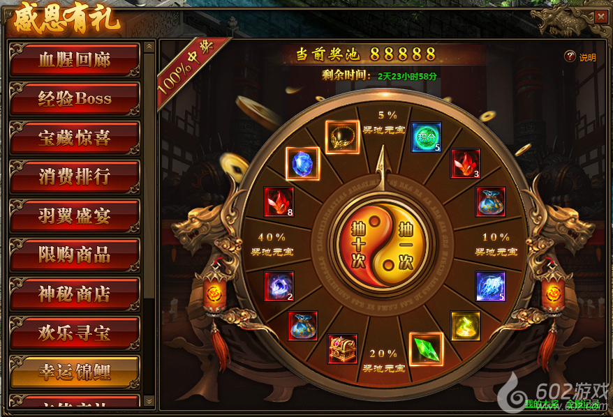 4.豪华奖池,100%中奖,更可称为传世锦鲤,领走奖池元宝!