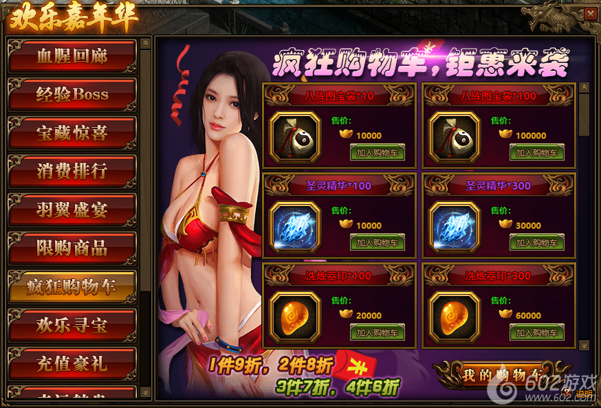 1.活动期间,玩家可在将碧落星空、龙纹福袋等物品放入我的购物车;