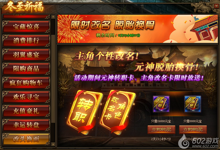 2.活动期间,玩家可在活动面板中购买主角改名卡,让你的名字个性十足;