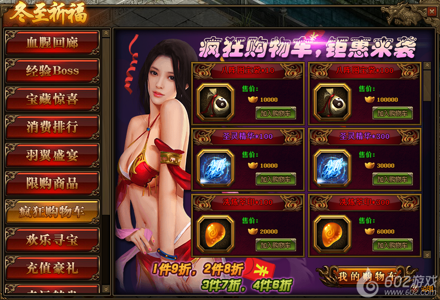 1.活动期间,玩家可在将碧落星空、龙纹福袋等物品放入我的购物车;