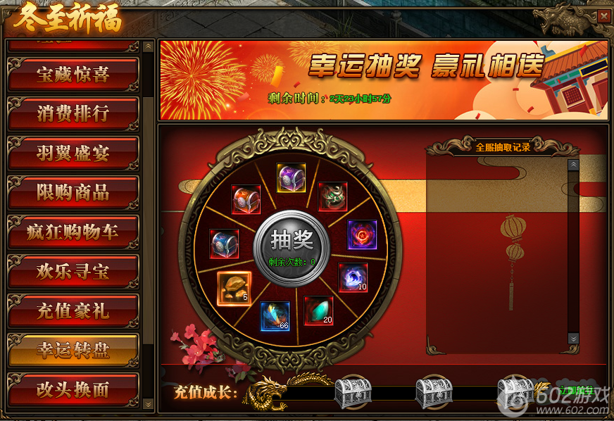 1.活动期间内,每日充值可增加充值成长值,达到一定充值成长值后可领取抽奖次数,每日最多获得3次抽奖机会;