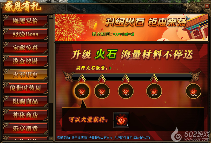 1. 活动期间,玩家获得火石碎片数量,达到条件可领取对应火石碎片奖励。