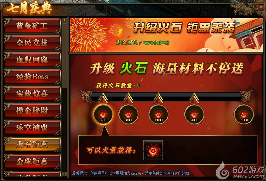 1.活动期间,玩家获得火石碎片数量,达到条件可领取对应火石碎片奖励。