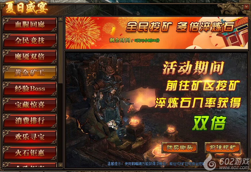1.活动期间,玩家使用“鹤嘴锄”进行挖矿,获得“淬炼石”的概率翻倍;