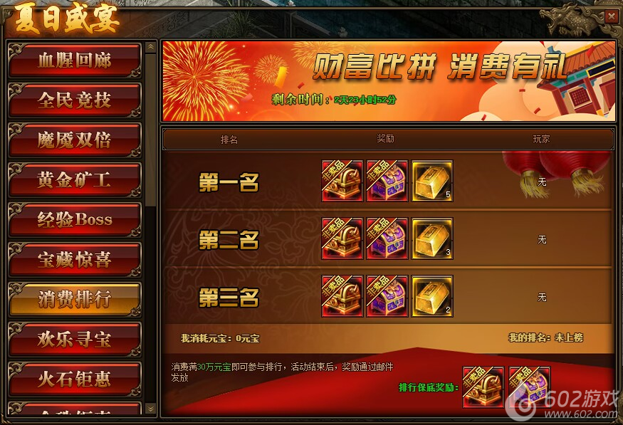 第二名:数一数二自选宝箱,低级灵器自选宝箱*1*1,金条(300w)*3;