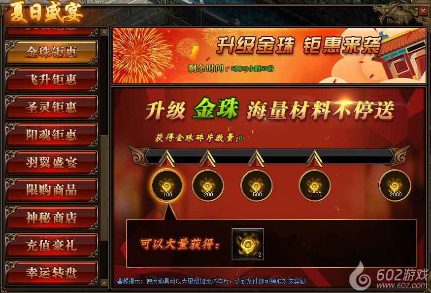1.活动期间,玩家获得金珠碎片数量,达到条件可领取对应金珠碎片奖励。