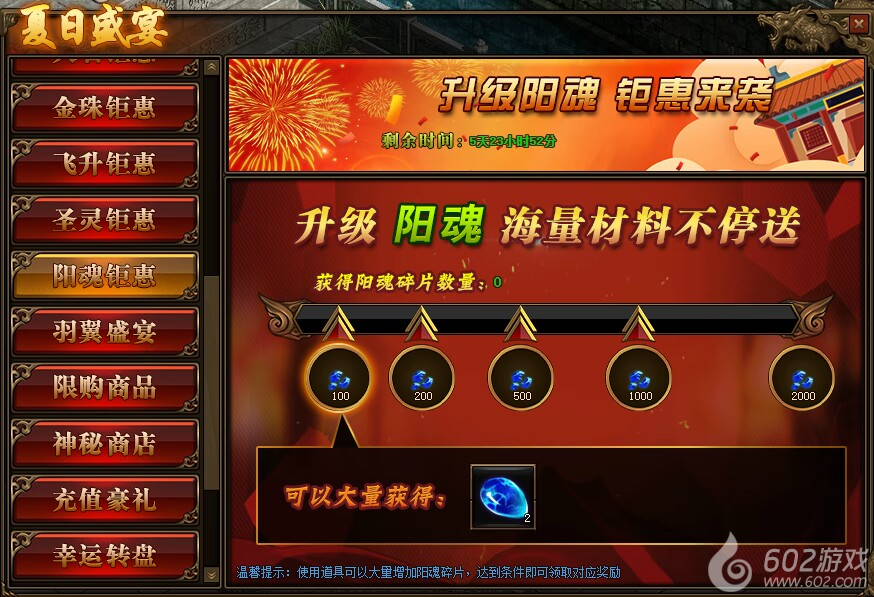1.活动期间,玩家获得阳魂碎片数量,达到条件可领取对应阳魂碎片奖励。