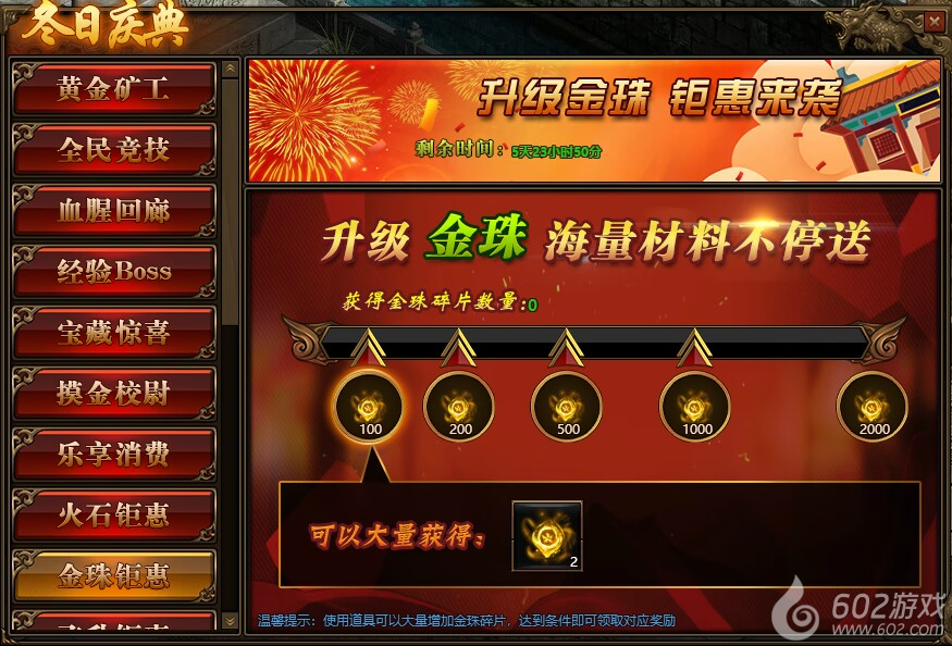 1.活动期间,玩家获得金珠碎片数量,达到条件可领取对应金珠碎片奖励。