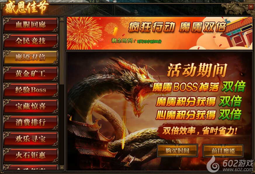 1.活动期间,玩家进入魔魇地图击杀魔魇BOSS可获得双倍掉落,获得魔魇、心魔积分翻倍