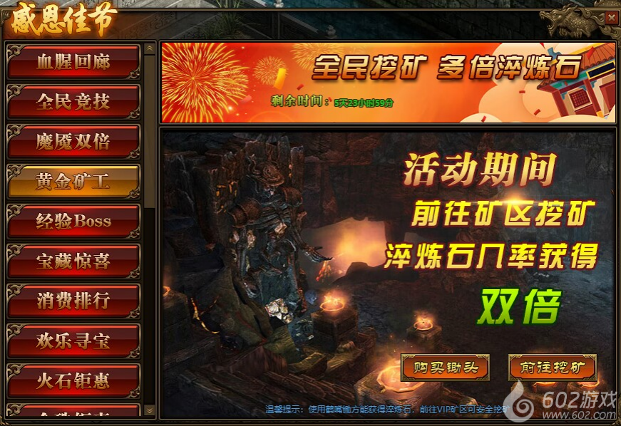 1.活动期间,玩家使用“鹤嘴锄”进行挖矿,获得“淬炼石”的概率翻倍;