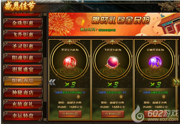 1.活动期间,玩家可在活动面板购买限购商品;(可翻页)